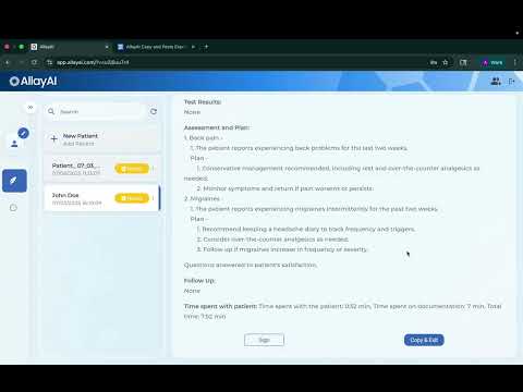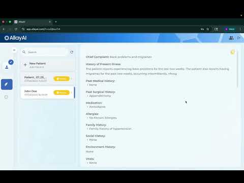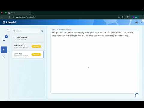Watch how AllayAI simplifies clinical documentation, editing, and patient communication — all in one seamless workflow.